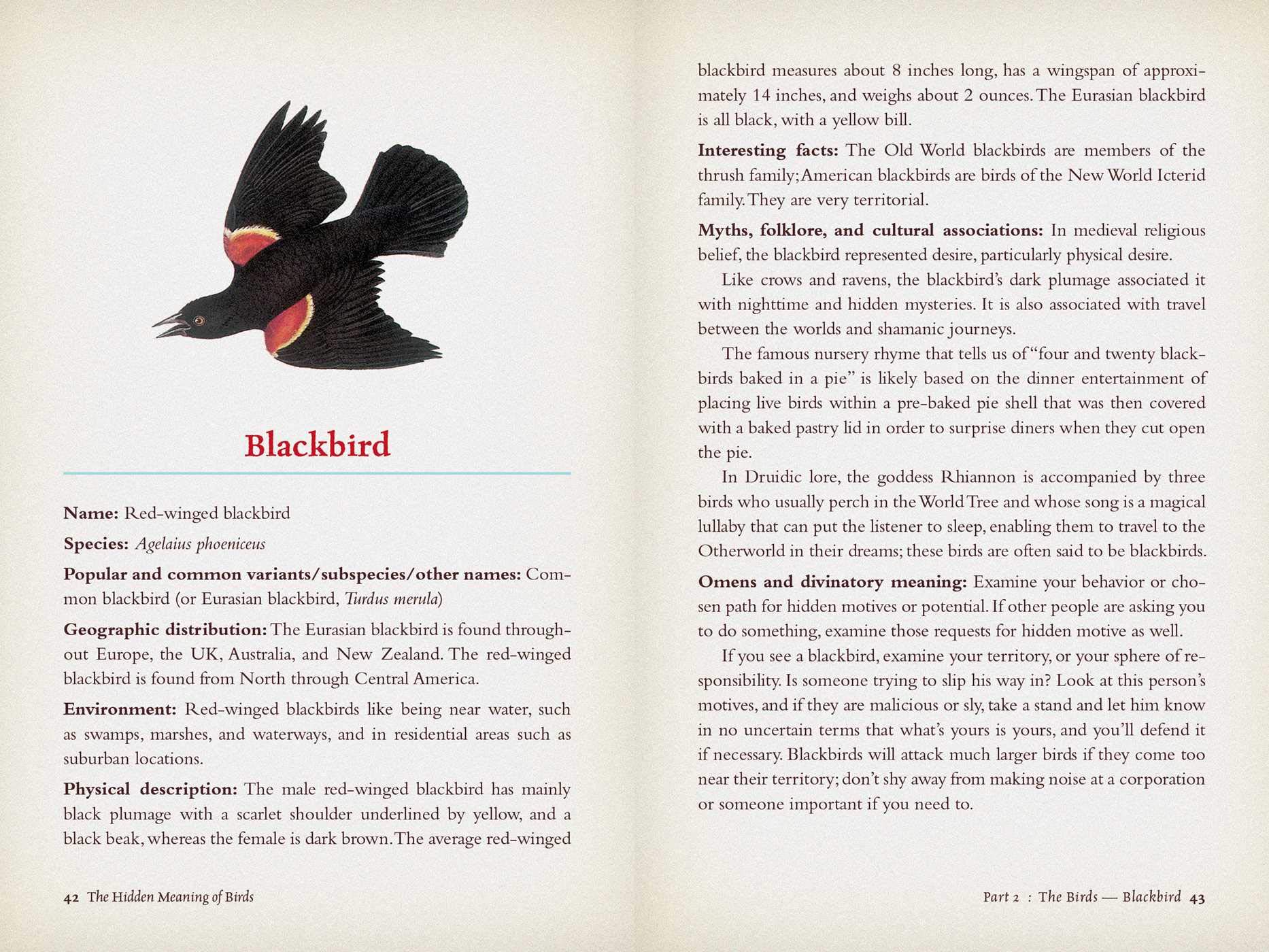 The name means ancient wing. The spirit of blackbirds teaches us to trust the path which god has chosen and his plans for us. Master the skill of this spirit animal, and govern your life in the direction you desire to see it take.