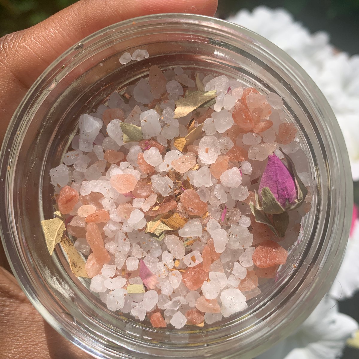 These bath salts contain a combination of pink Himalayan salt, sea salt