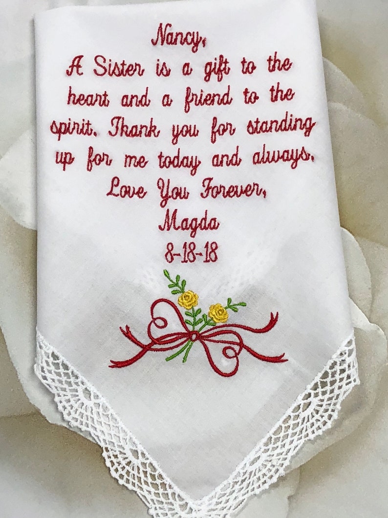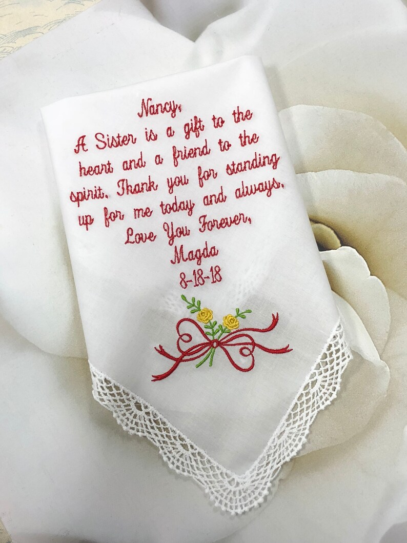 Sister Wedding Handkerchief. Wedding Gift. A Sister is a gift Etsy