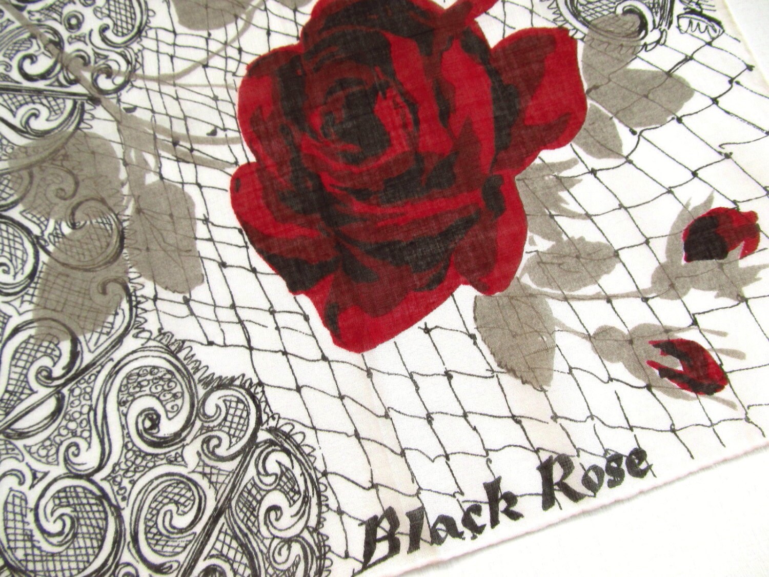 Vintage Black Rose Handkerchief Rich in Symbolic Meaning