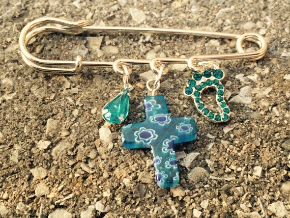 Baby safety pin/ Cross charm/ Spiritual gift/ Baby boy gift/