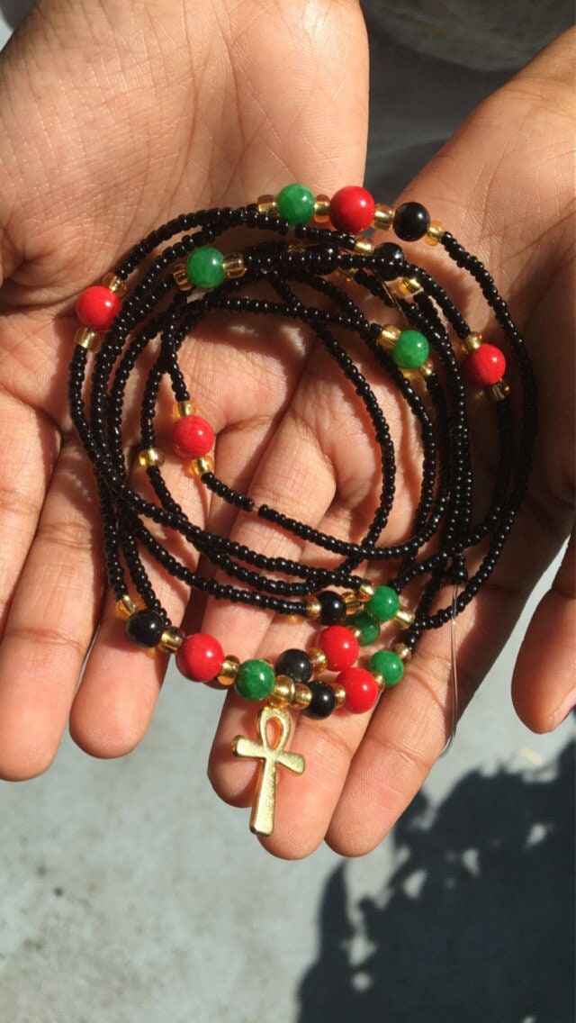 African Waist Bead with Ankh Charm bla gold waist Etsy Beaded